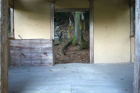 向かって右にあるのは茶接待の際に湯を沸かしたかまどの残骸