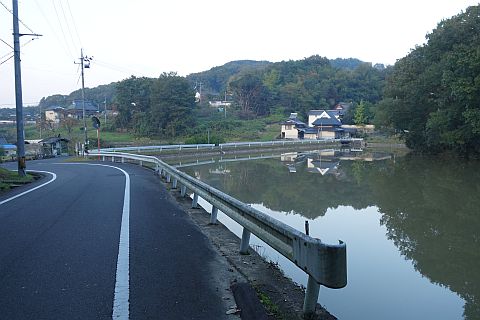 土手道を北東へ80m進み、つきあたりの丁字路を左折して北北西へ400m下る