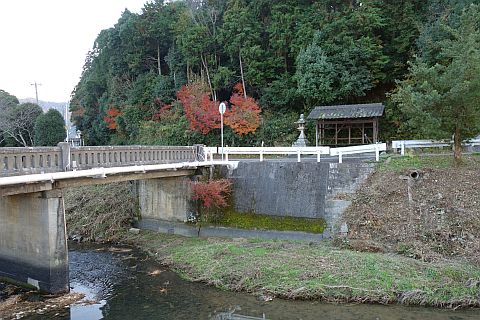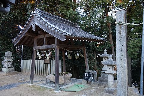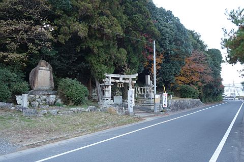 縣主神社の境内の北東、稲木川沿いの道の脇にある