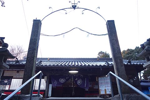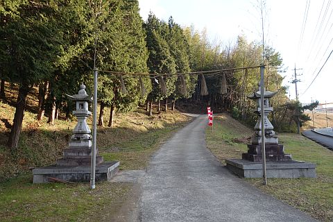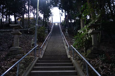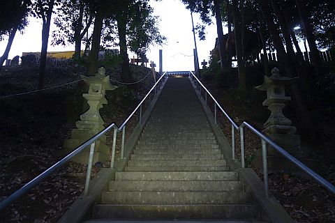https://goo.gl/maps/LyZiipKVjEo拝殿前に戻り、表参道(石段)を下って車道に戻り、右折して南へ145m進む