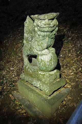 縣主神社の像に似ているが、こちらは口に経巻を咥えていない。