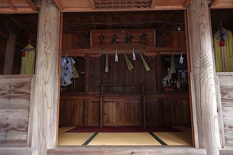 扁額「應神天皇 慶応元(1865年)乙丑八月吉日 願主 平木資之」