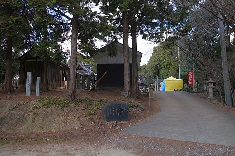 境内の南にある裏参道(車道)と駐車場前