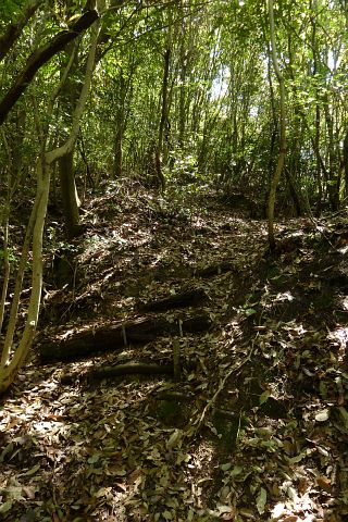 落ち葉が堆積した急坂となる