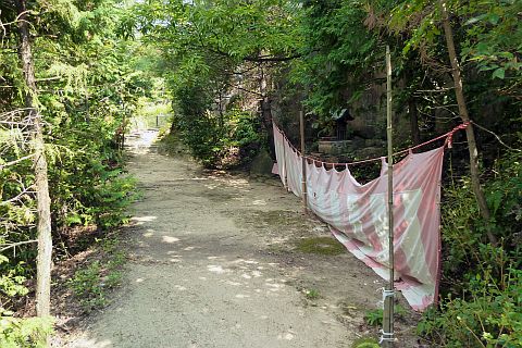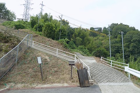 駐車場から県道を南へ460m進み、十字路を右折して西へ60m進む(自転車・徒歩のみ)。