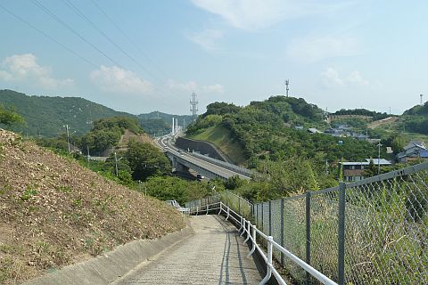 西瀬戸自動車道の下を通過してつきあたりを右折し、北北東へ188m上る。