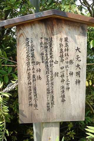 祭神は市杵島姫命と田心姫命と湍津姫命(厳島神社の祭神である宗像三女神)