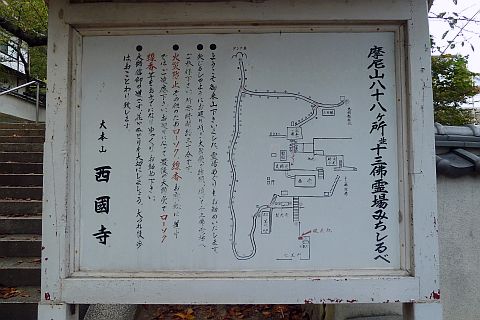 西國寺の境内には摩尼山四国八十八ヶ所霊場の本尊石仏群や力石等がある