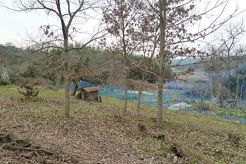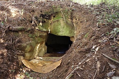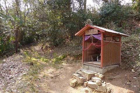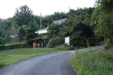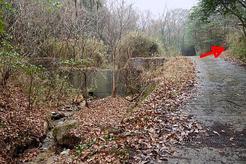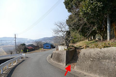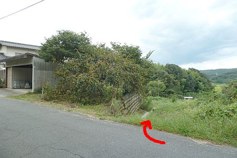 峠から南西へ150m下り、Y字路を西南西(右)へ5m下る