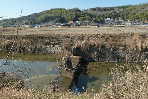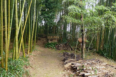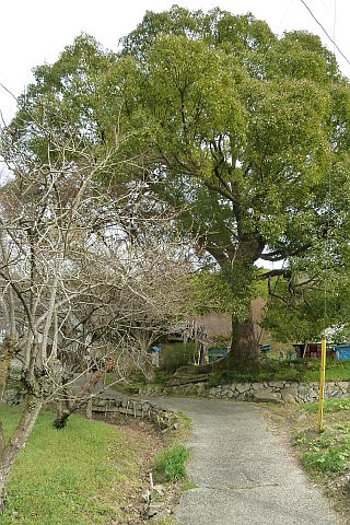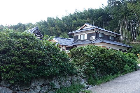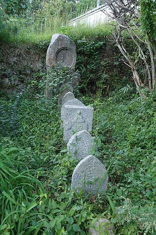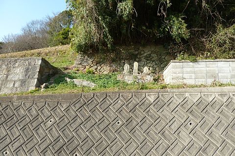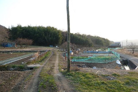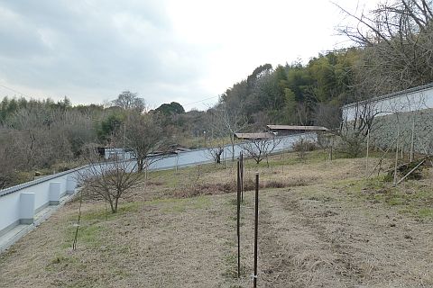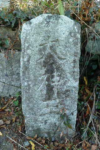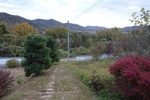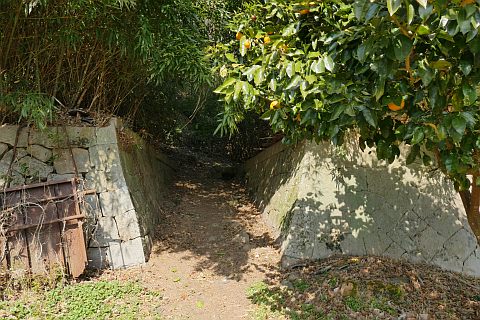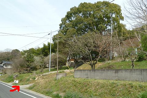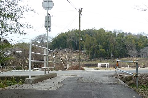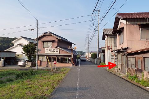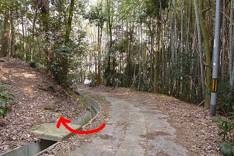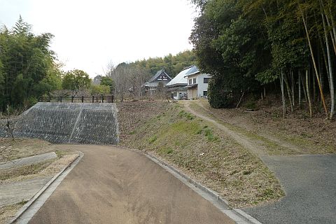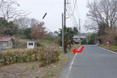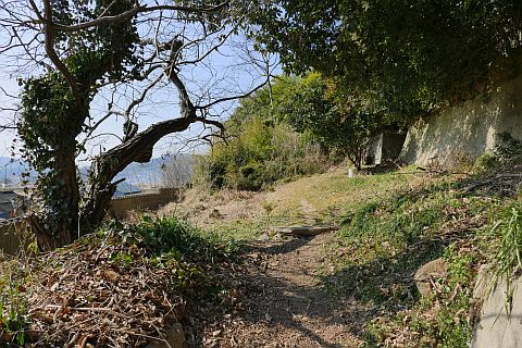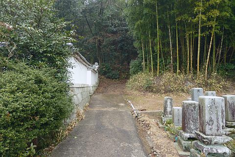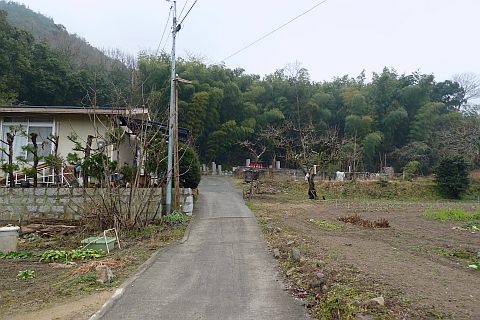 丁字路に戻り、天神山の墓地への参道を北北東へ45m進み、左折して北西へ100m進む。