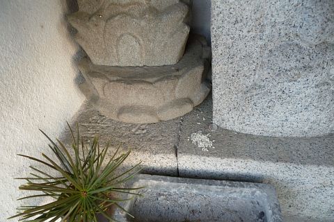 天神社の石鳥居の扁額と破損した一石一体の笠木島木