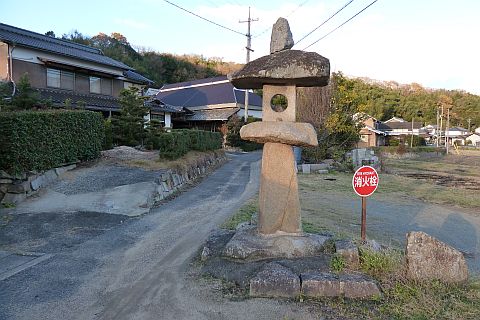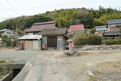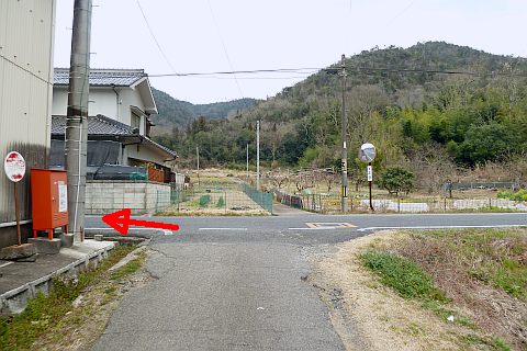 つきあたりの丁字路を右折し、松山往来(笠岡往来)を南へ25m進む