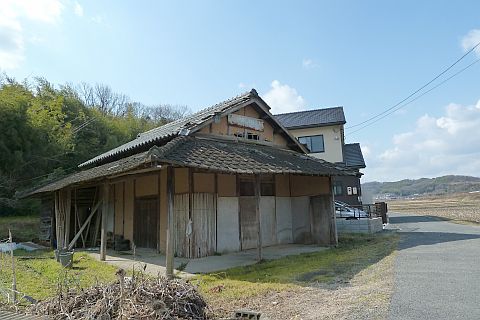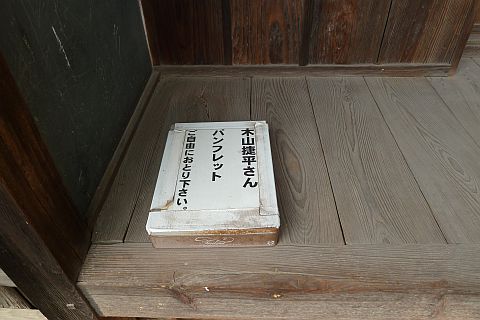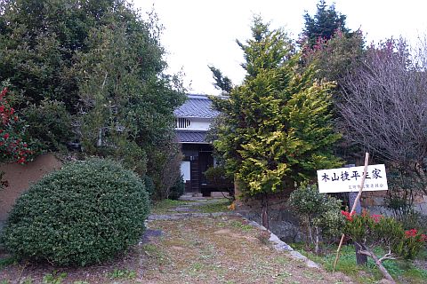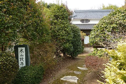 丁字路から急勾配の細道を110m下り、左折してすぐの所に木山捷平生家がある。