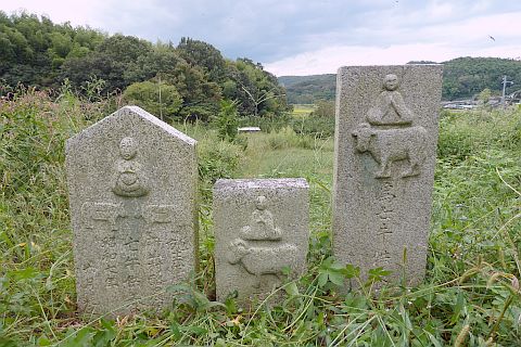 牛供養碑・万人講供養碑・六字名号碑(兼 光明真言曼荼羅石)