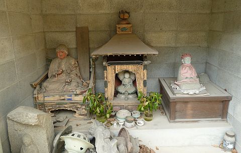 大原焼の祠の中に天神像(菅原道真公の像)が祀られている