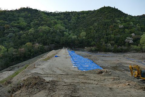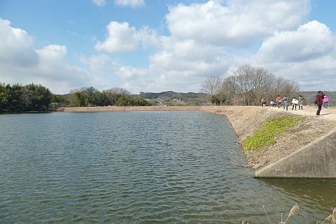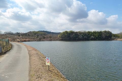 奥山池の堤体の上を通って車道(市道森ヶ市平谷線)に出ることはできない。