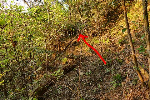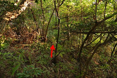 まっすぐ下る道があるように見えるが、10m程で途絶える。