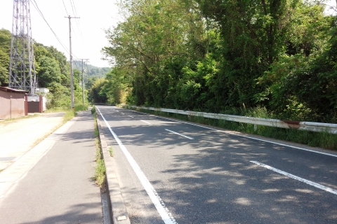 道の向かって左は笠岡市山口3525、右は笠岡市新賀2-1