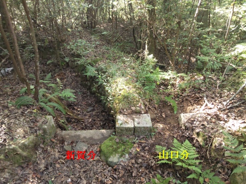 新賀分の溝の幅は72cm、山口分は34cm。比率は6分8厘対3分2厘。