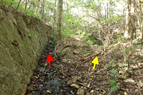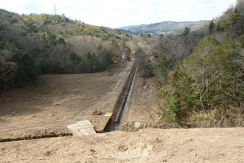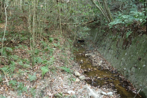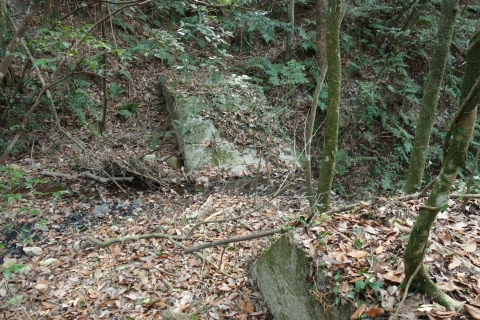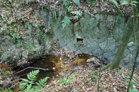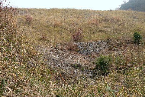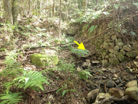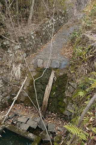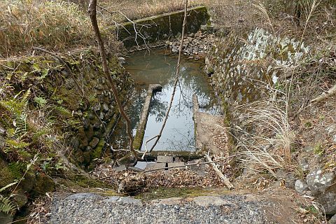 分水石から水路沿いに東へ90m上った所(笠岡市山口3527-1)に分水路がある