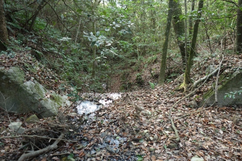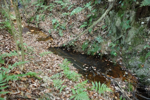 龍王山の南斜面と七鍬山(平井山)の北斜面の水がこの谷川に集まる