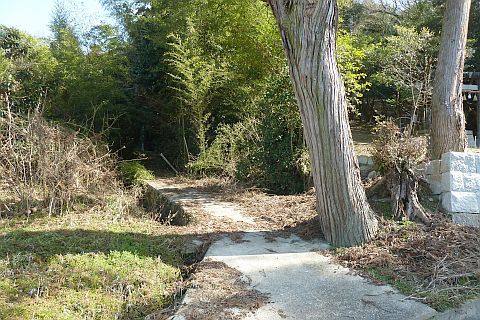 右折して細道(笠岡市新賀 長狭物不明-642、長狭物不明-714)を南へ下ると、