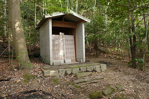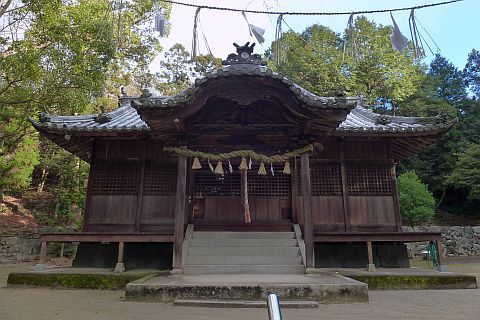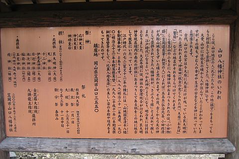 昭和五十九年(1984年)三月吉日に再建。山口八幡神社の境内に遥拝所がある。