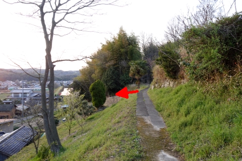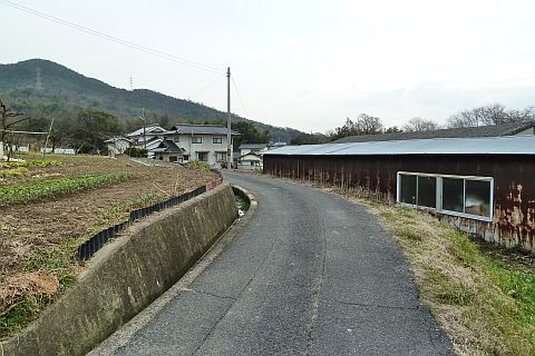 水路(笠岡市山口 水-633)沿いの細道を東へ100m上る
