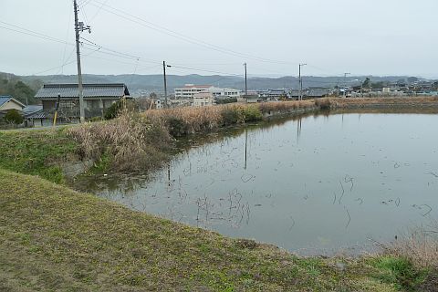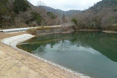 山口側へ下った水は水路(笠岡市山口 水-640、水-630、水-618、水-614)を通って米田池に流れ込む