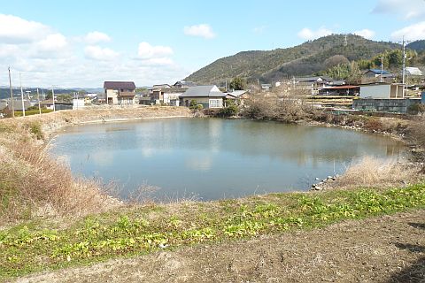 南へ160m程下ると新賀の妙見池の横を通って笠岡新四国46番浄瑠璃寺の近くに出る。