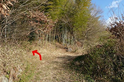 丁字路(左に上ると龍王山、右に下ると尾坂池の堤)
