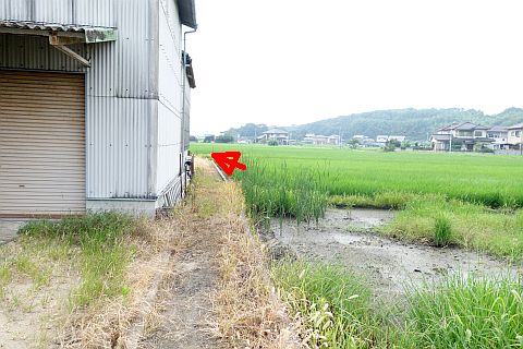 ゴミステーション横の空き地の隅にある