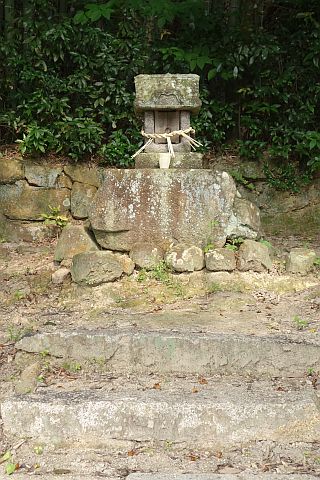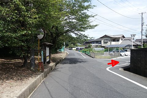 拝殿の向かって左から細道を南へ50m進み、ゆるい右カーブの右手