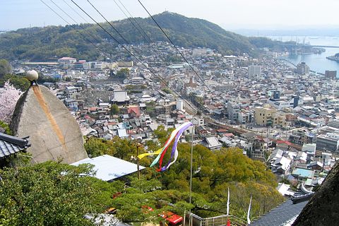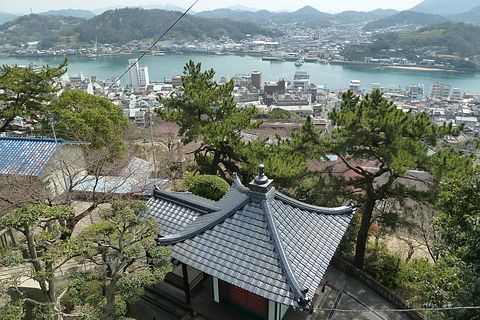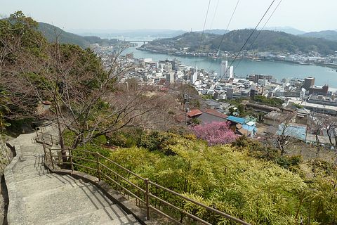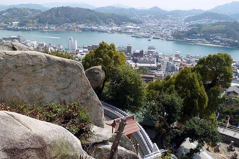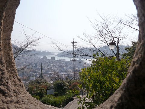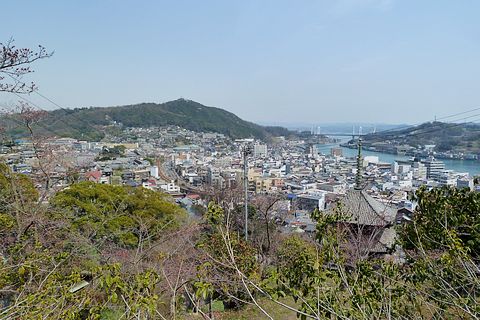 此處市街を眼下に見御し尾道の迫門前に流れて向嶋と相對するの好景