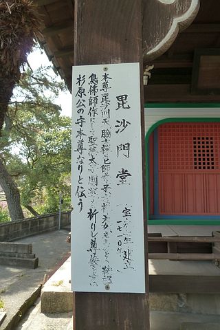 其の本尊なる多聞天は城主杉原民部大輔の奉納にて