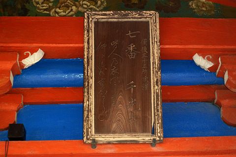 「三拾三番」「よろずよ乃誓を○○納めおく ○○こけよりいづる谷ぐ三(み) 中屋吉兵衛 灰屋保兵衛」