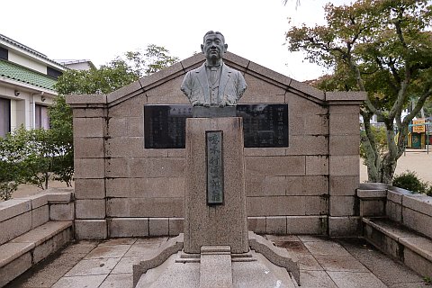 戦後再建の胸像に代えこの胸像を建設す 平成九年三月 矢掛町 矢掛高等学校同窓会」