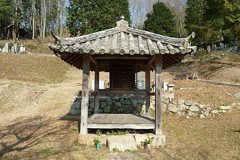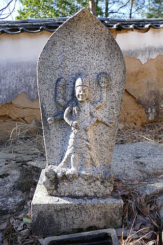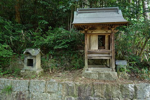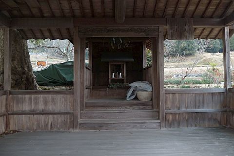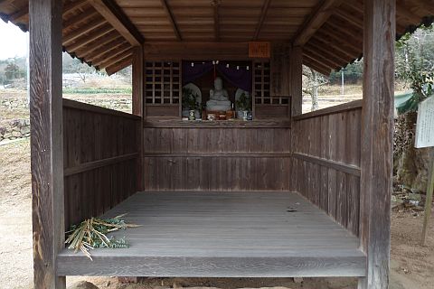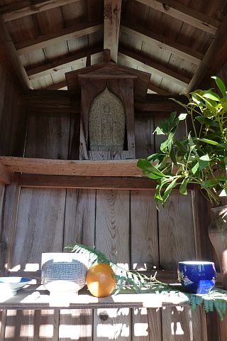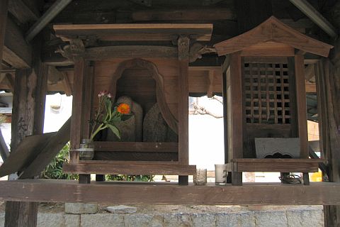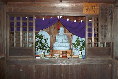 安置されている。右の厨子の中の石仏(舟形光背型)は布で覆われている。
