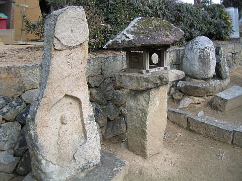 横谷の山根・井谷・原・猪又地区にある石仏は高さ40cm前後、幅25cn前後。