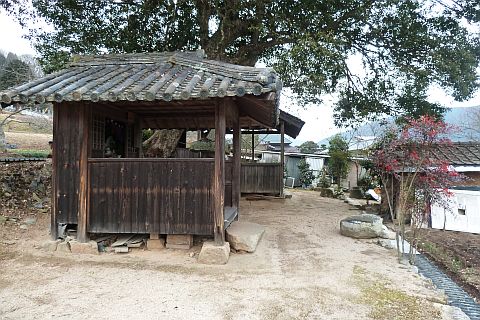 参道入口に戻り、左折して南西へ526m上り、猪又公会堂へ