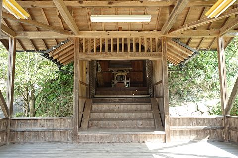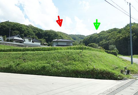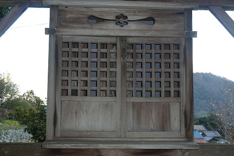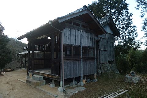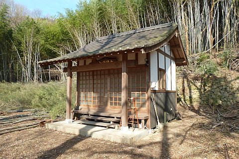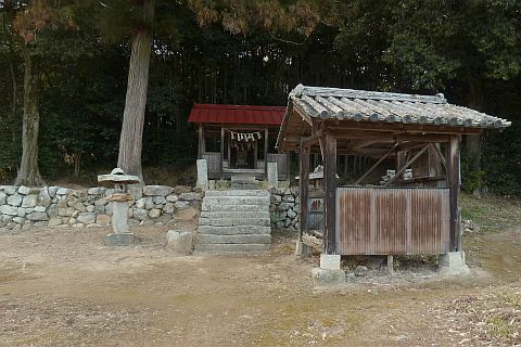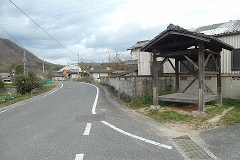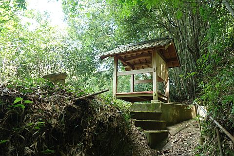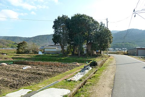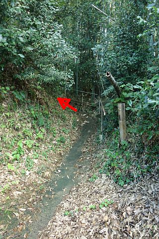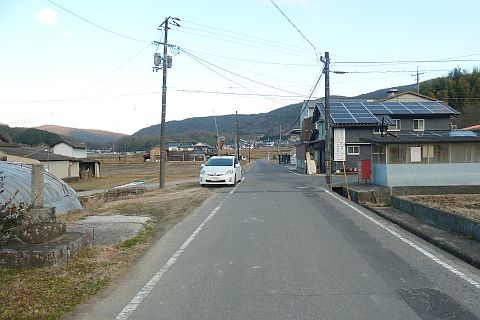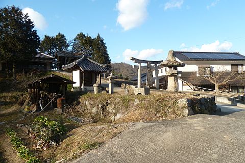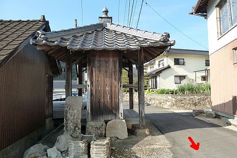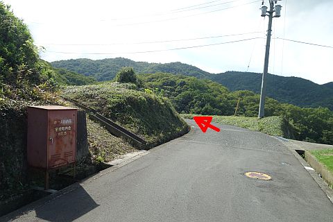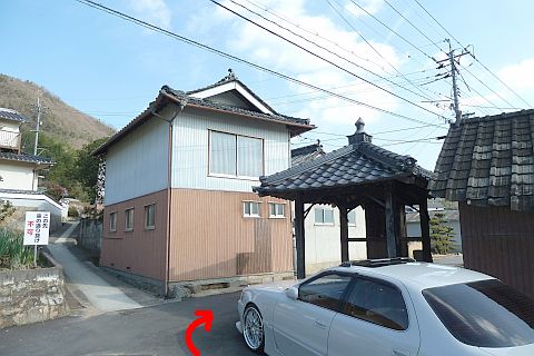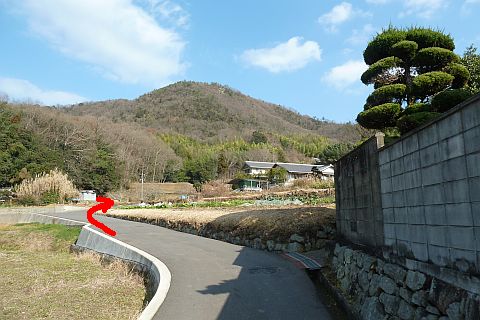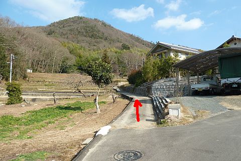荒神社の横から車道を南東へ116m上り、左折して細道を北北東へ112m進み左折。