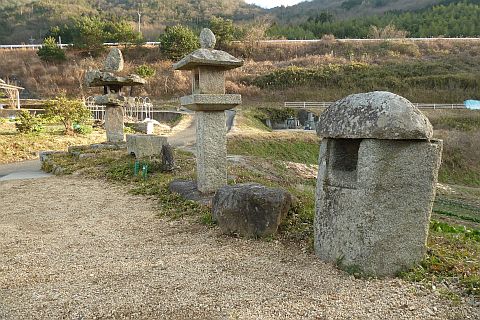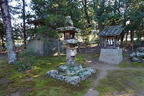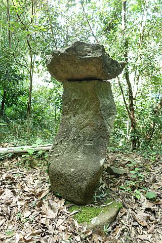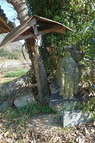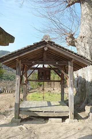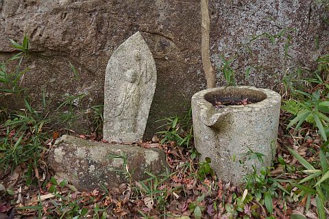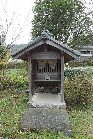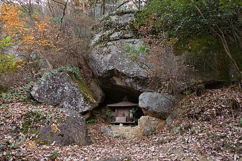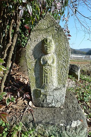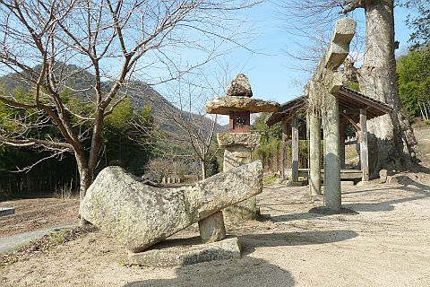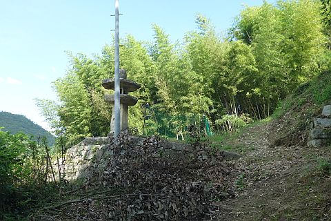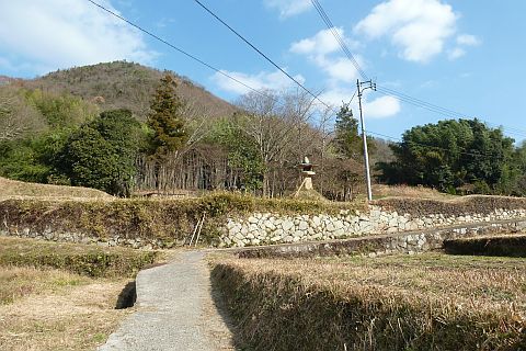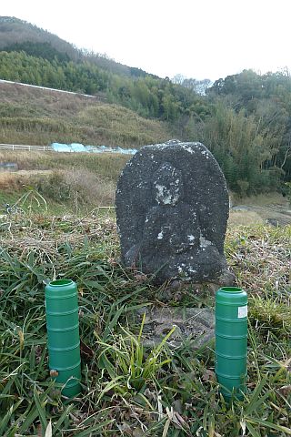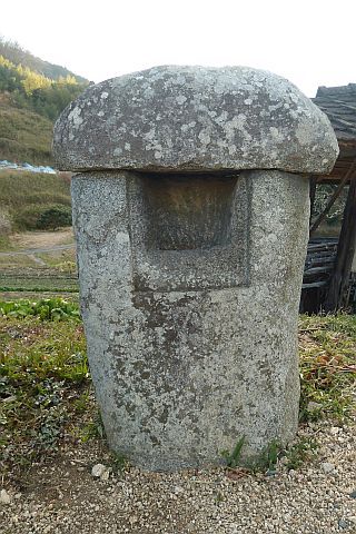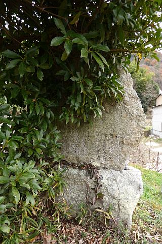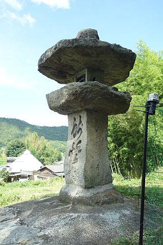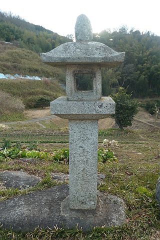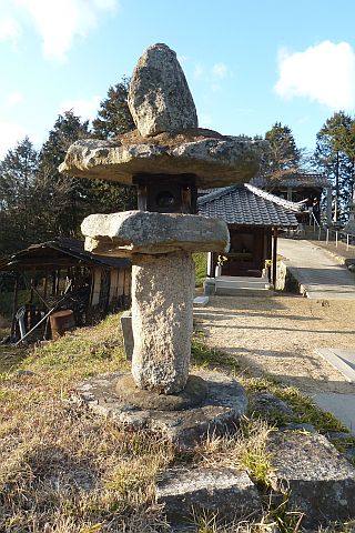 小迫公会堂前(南東313m)にある自然石の燈籠には