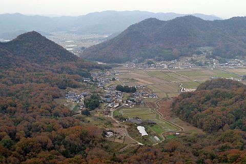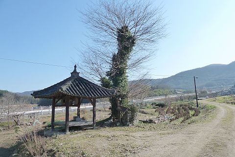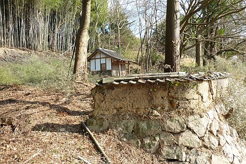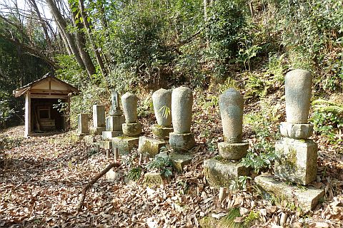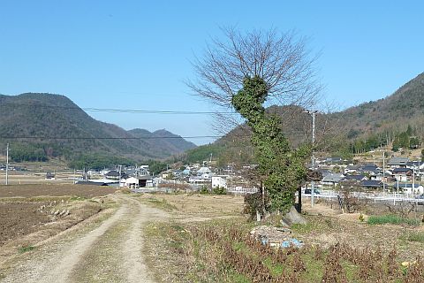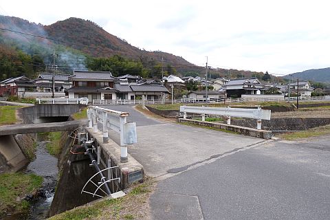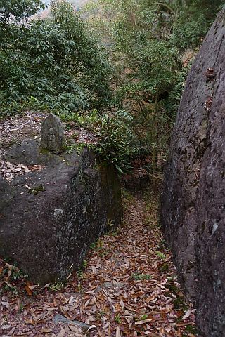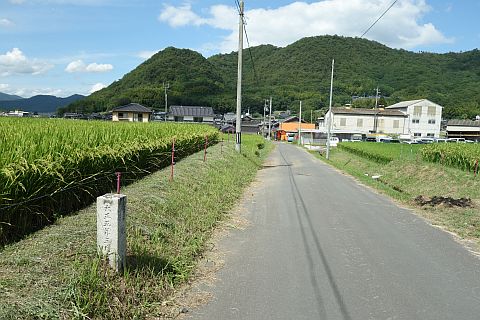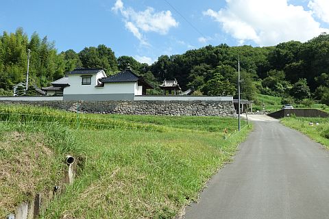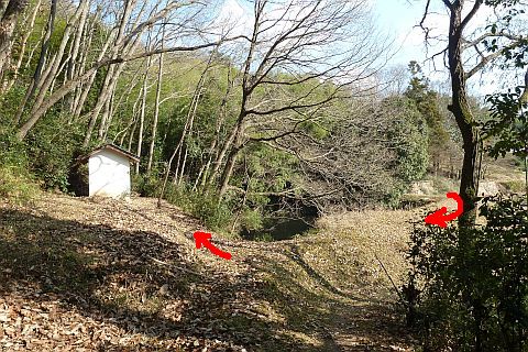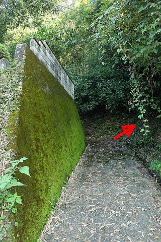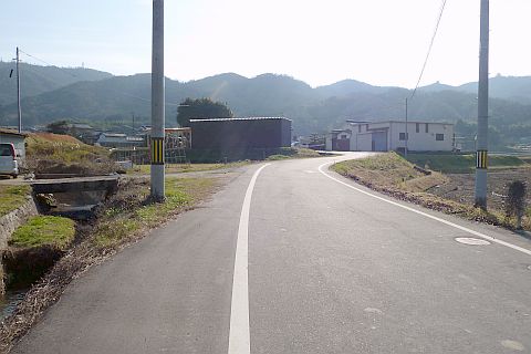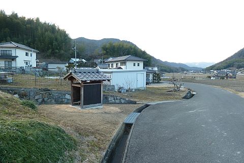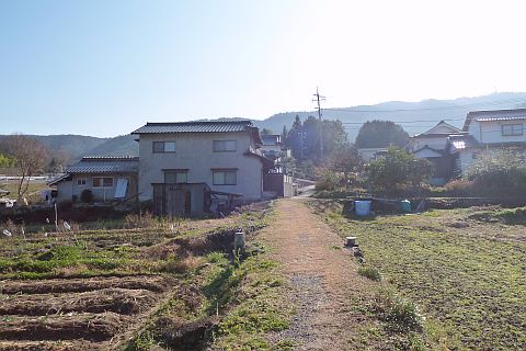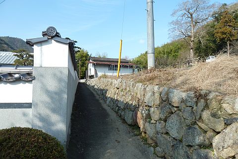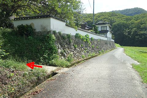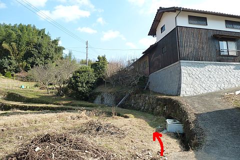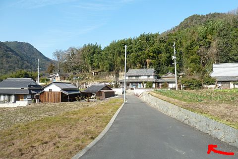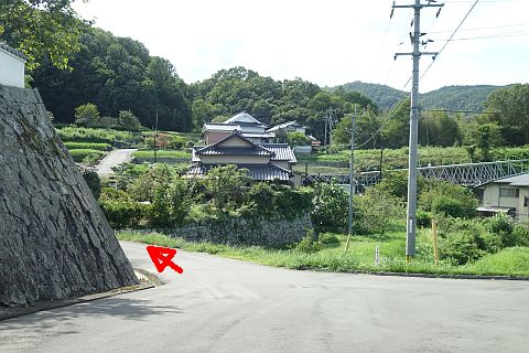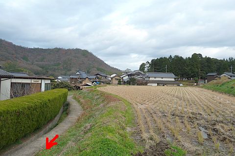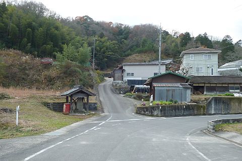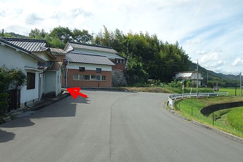 丁字路から北東へ70m上り、つきあたりの丁字路を右折し、細道を東南東へ13m進む