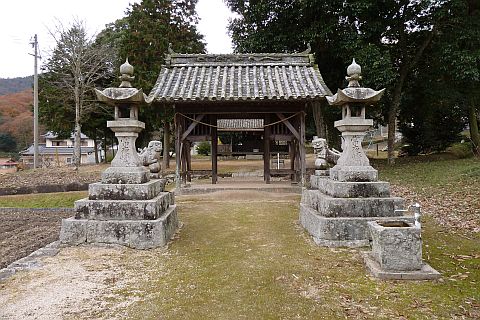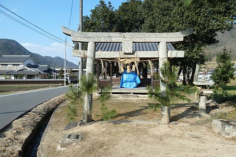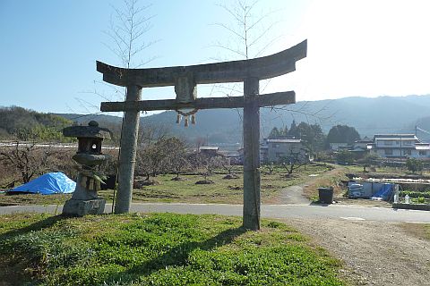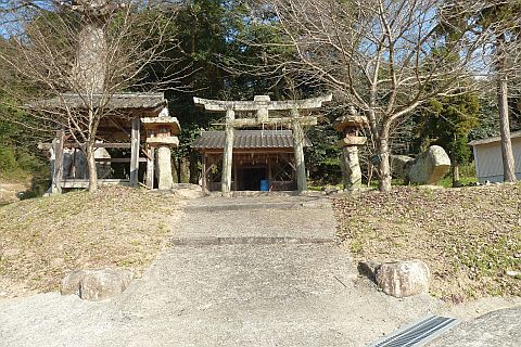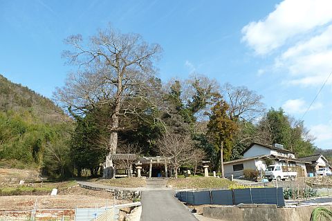 神前神社の本殿の後ろの丁字路に戻り、左折して北へ235m進む。