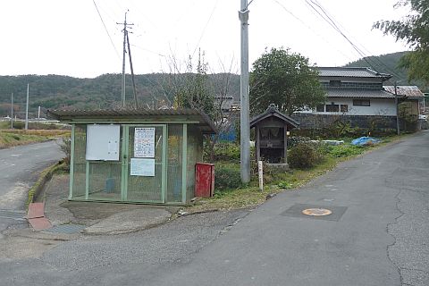 広石公会堂の南南西にある変則十字路を左折し、北北東へ45m上る
