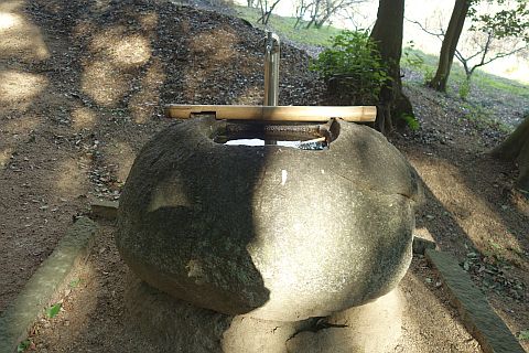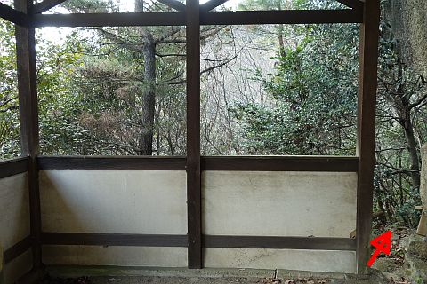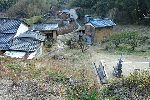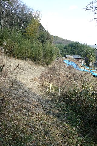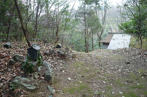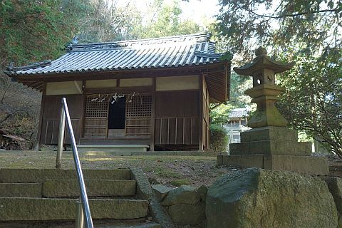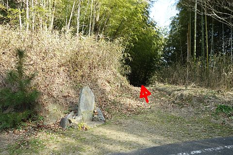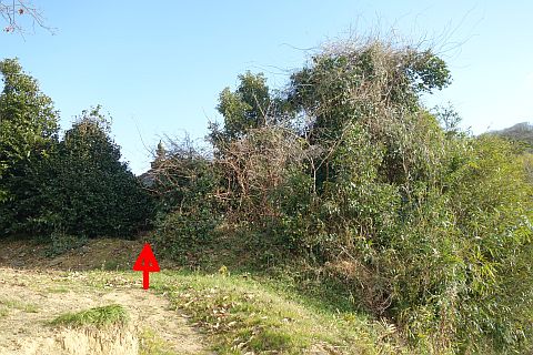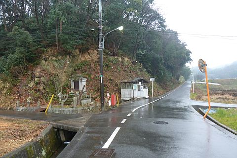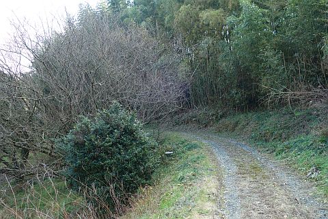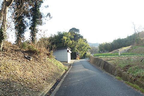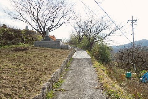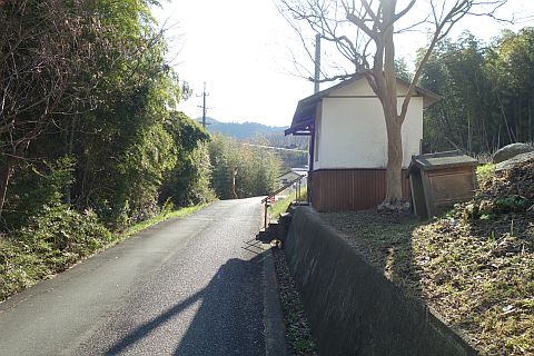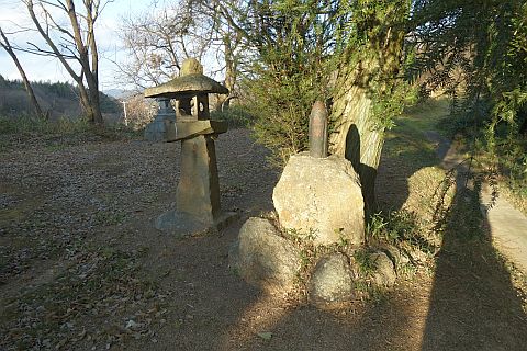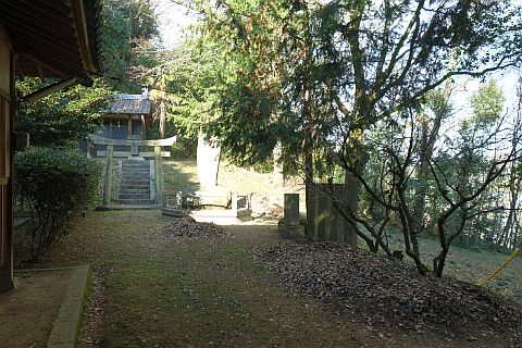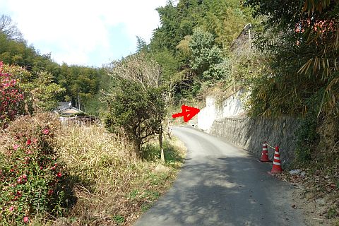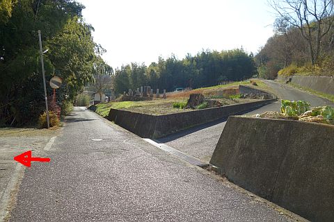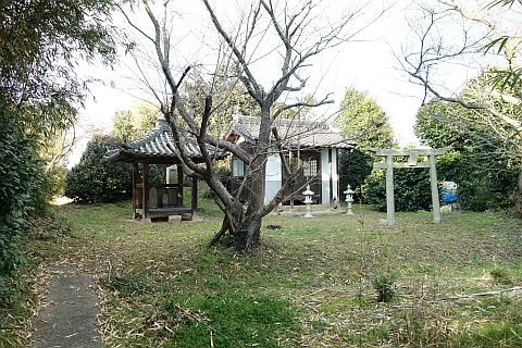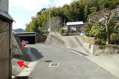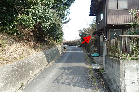 十字路に戻り、天神社への参道を南西へ70m上り、右折して北西へ15m上る