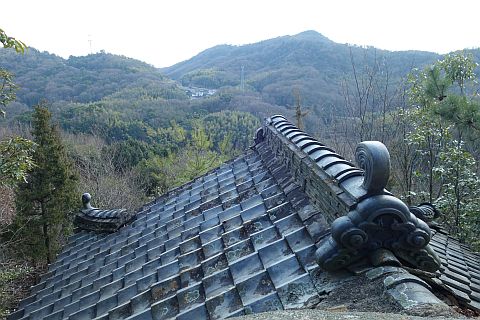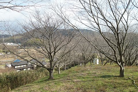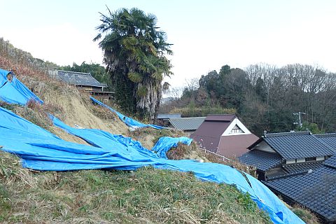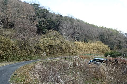 正面(南南東)に実盛地区、向かって右に鉢山(標高242m)、左に鉢山送信局舎