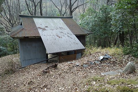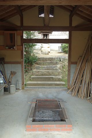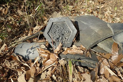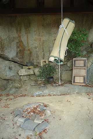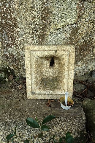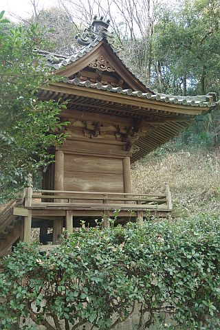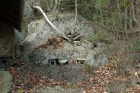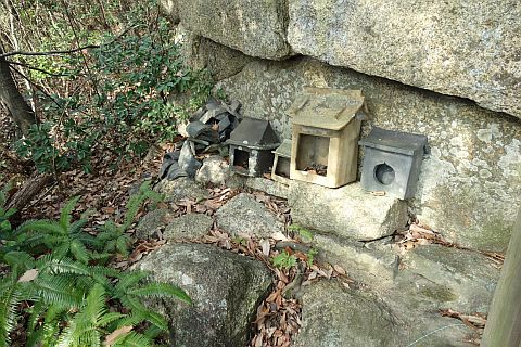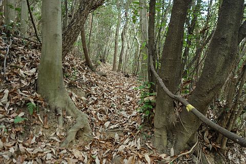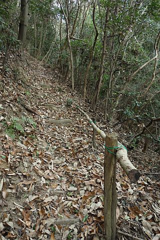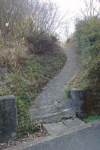 参道は急勾配で枯れ葉が積もっているため滑りやすい