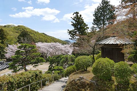 御詠歌「三津のうら百枝の庭に花ふりて 法(のり)の御祖(みおや)は降誕(あれ)ましにけり」