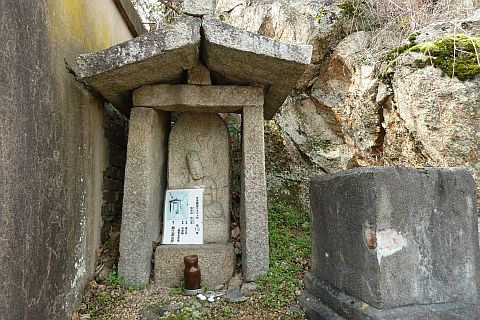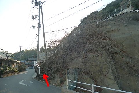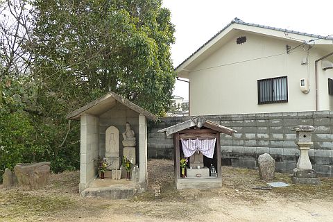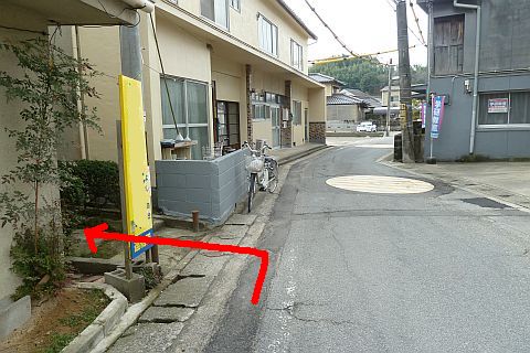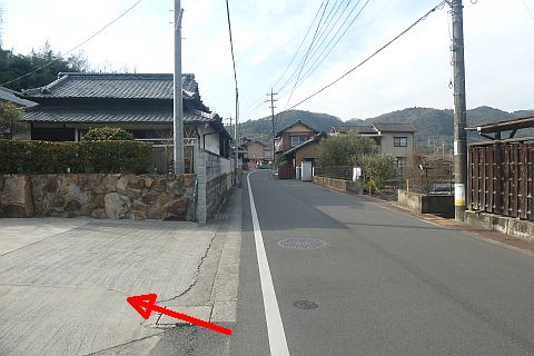 福山往来から左折して細道に入り、南東へ11m進んで左折し、民家の裏にまわる